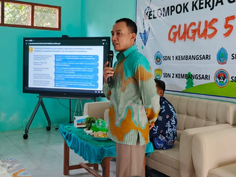 Papan interaktif digital adalah alat pembelajaran modern yang menggabungkan teknologi layar sentuh dengan sistem komputer untuk memudahkan proses penyampaian materi di kelas. Dengan papan ini, guru dapat menampilkan berbagai konten seperti teks, gambar, video, dan animasi secara langsung, sehingga pembelajaran menjadi lebih menarik dan interaktif. Selain itu, siswa juga dapat berpartisipasi aktif dengan menyentuh atau menulis di layar, yang membantu meningkatkan pemahaman dan keterlibatan mereka. Penggunaan papan interaktif digital dalam kegiatan KKG (Kelompok Kerja Guru) sangat bermanfaat untuk berbagi metode pembelajaran inovatif serta meningkatkan kompetensi guru dalam memanfaatkan teknologi di era digital.